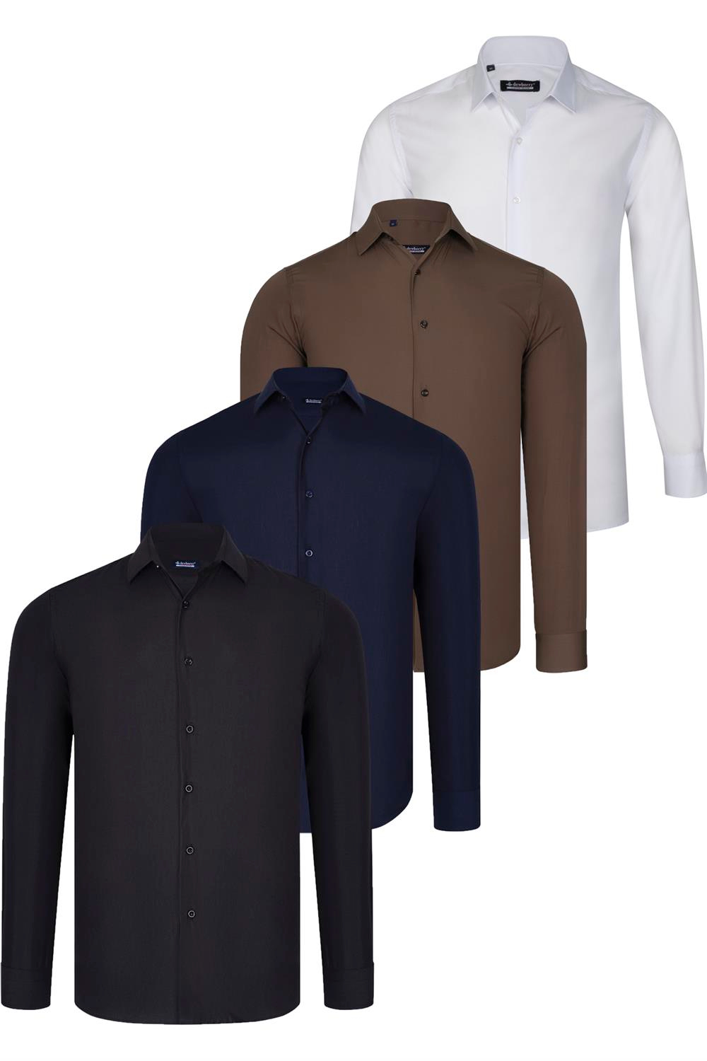 DÖRTLÜ SET G726 DEWBERRY GÖMLEK-SİYAH-BEYAZ-LACİVERT-KAHVE