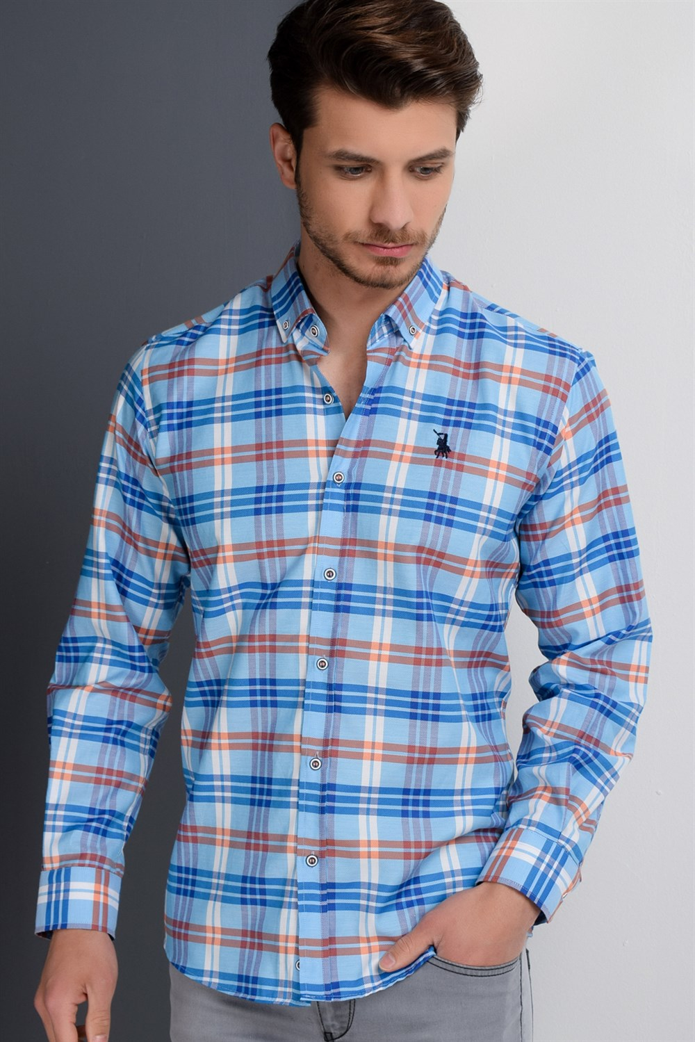 G663 DEWBERRY ERKEK GÖMLEK-TURKUAZ
