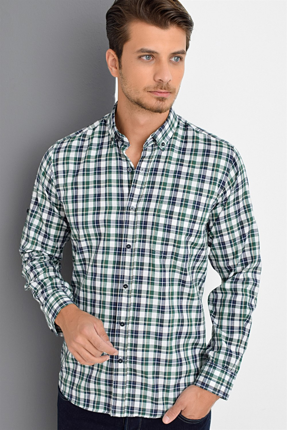 G669 DEWBERRY ERKEK GÖMLEK-YEŞİL
