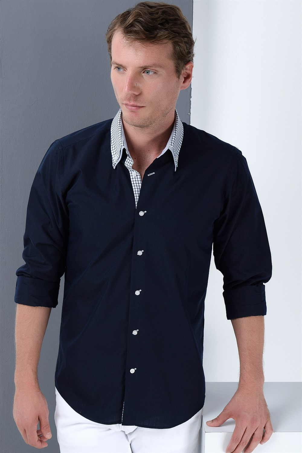 G692 DEWBERRY ERKEK GÖMLEK-LACİVERT-BEYAZ