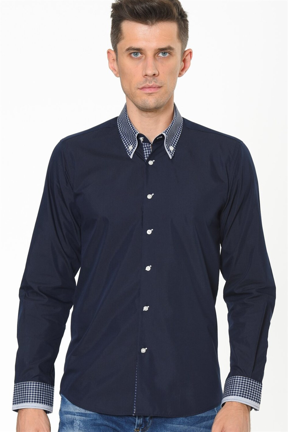 G692 DEWBERRY ERKEK GÖMLEK-LACİVERT-MAVİ
