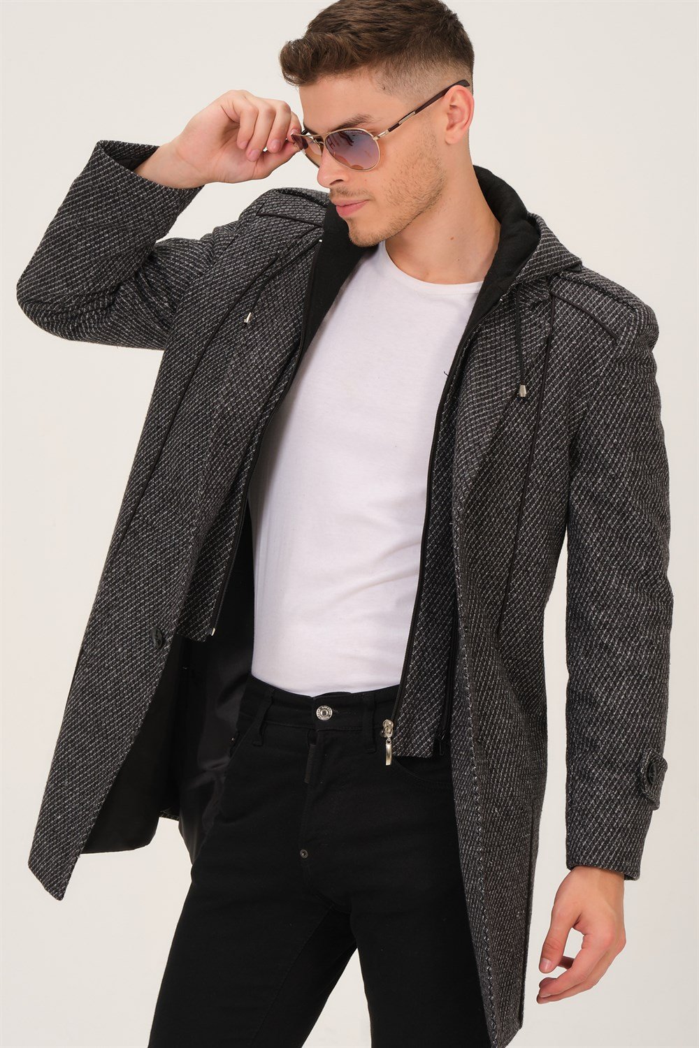 PLT8334 DEWBERRY ERKEK PALTO-DESENLİ GRİ